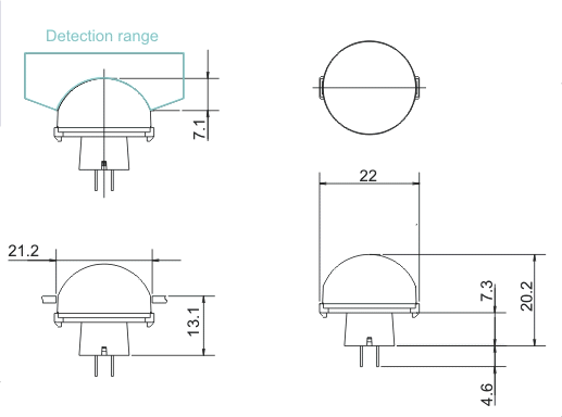 Due to its small size, the Motion Sensor can be easily integrated into devices or lamps. As a delivery variant we also offer a version under the type designation "ISYGLT BW-06-UP" for mounting on commercially available switch boxes. If required, please inquire about the possibilities for corresponding switch ranges from the various manufacturers.