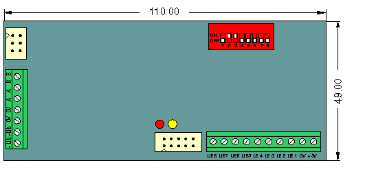 8-poliger DIP-Schalter zur Einstellung der ISYGLT BUS-Adresse (0-127) befindet sich auf dem Modul.
