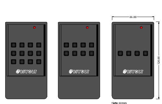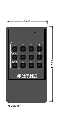 Mit dem ISYGLT-Funkhandsender werden die Funktionen des BUS-Systems schnurlos ferngesteuert. Die 12 Tasten des Funk-Handsenders sind von der Kanalnummer voreingestellt - können jedoch mit dem Programmier-Adapter und der Software IR-PROG individuell angepasst werden. Im ISYGLT-System sind dann die entsprechenden Funktionen frei verknüpfbar. Zum Betrieb ist ein ISYGLT Funkempfänger FUE-A nötig.