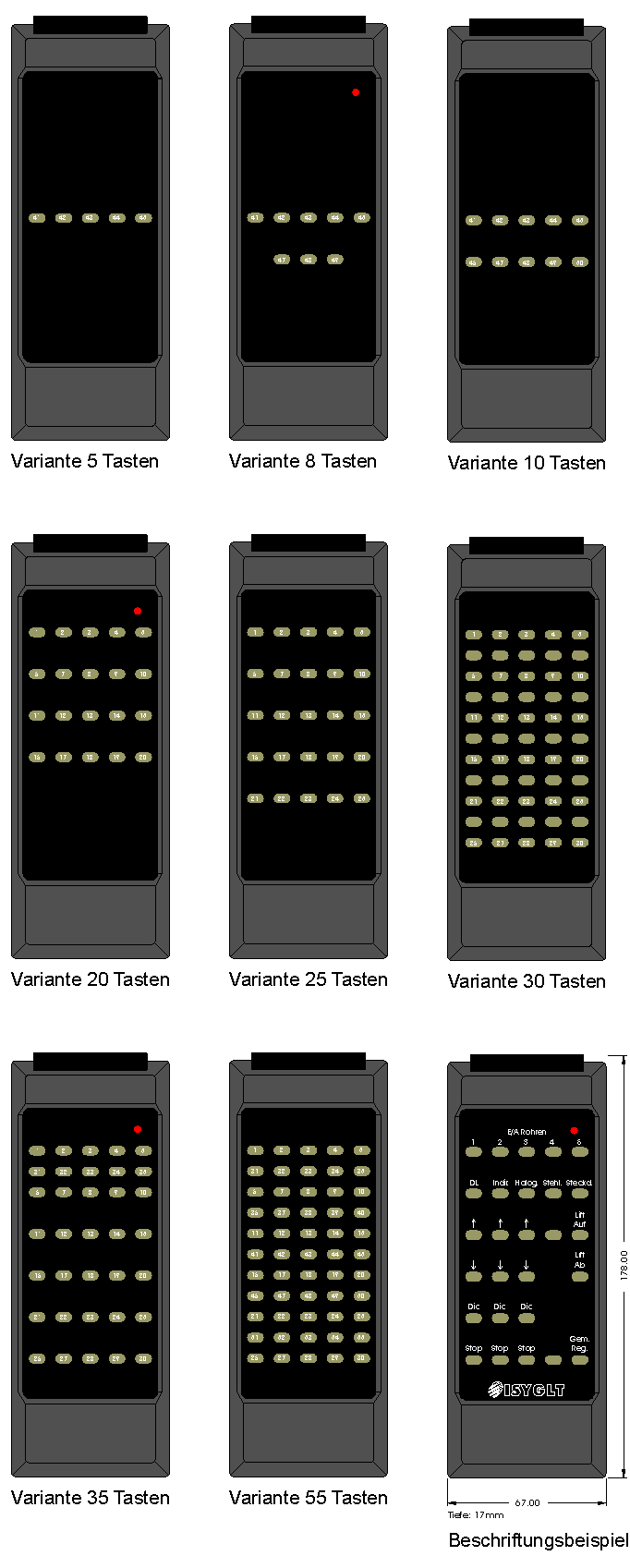 - 5, 8, 10, 20, 25, 30, 35 oder 55 Tasten