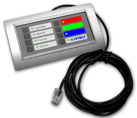 Das ISYGLT-Tischpult ist mit 8 Folientasten und 8 grünen LED-Rückmeldungen für den mobilen Einsatz geeignet. Durch das ansprechende Design und die kleine Bauform eignet sich das Tischpult vor allem als Bedienstelle auf dem Schreibtisch. Die Beschriftung wird über Einschubstreifen individuell realisiert. Alle Ein- und Ausgänge sind über die Software in den Funktionen frei programmierbar. Das I/O-08T-PNP-Modul im Gehäuse ist default auf die Adresse 64 eingestellt. Der Anschluss erfolgt über die handelsüblichen RJ45-Anschlüsse.