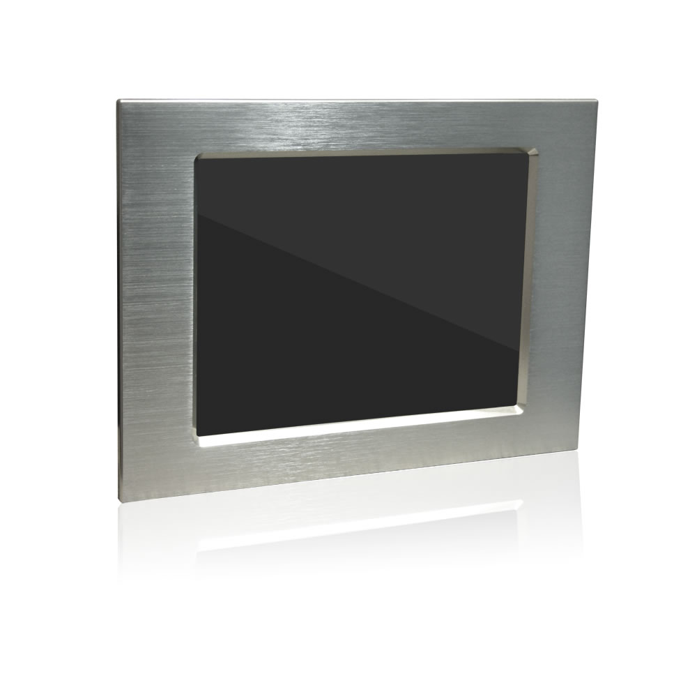 Das LCD-Farb-Touch-Display mit resistivem Touch-Screen lässt sich aus allen Blickwinkeln sehr gut betrachten, die Touch-Bedienung ist mit trockenen oder feuchten Händen immer sehr gut. Das Gehäuse besteht aus äußerst stabilem Stahlblech (IP20), ist voll geschlossen und dadurch gut gegen äußere Einflüsse geschützt. Als Frontblende stehen verschiedene Varianten zur Verfügung, die entweder mit sehr starken Magneten oder optional mit Schrauben montiert werden. Der Atom-Prozessor ist im Verbrauch sehr sparsam und hat nur wenig Wärmeentwicklung. Da weder ein Lüfter eingebaut ist und auch sonst keine beweglichen Teile vorhanden sind, entsteht keine störende Geräuschentwicklung (Festplatte optional).