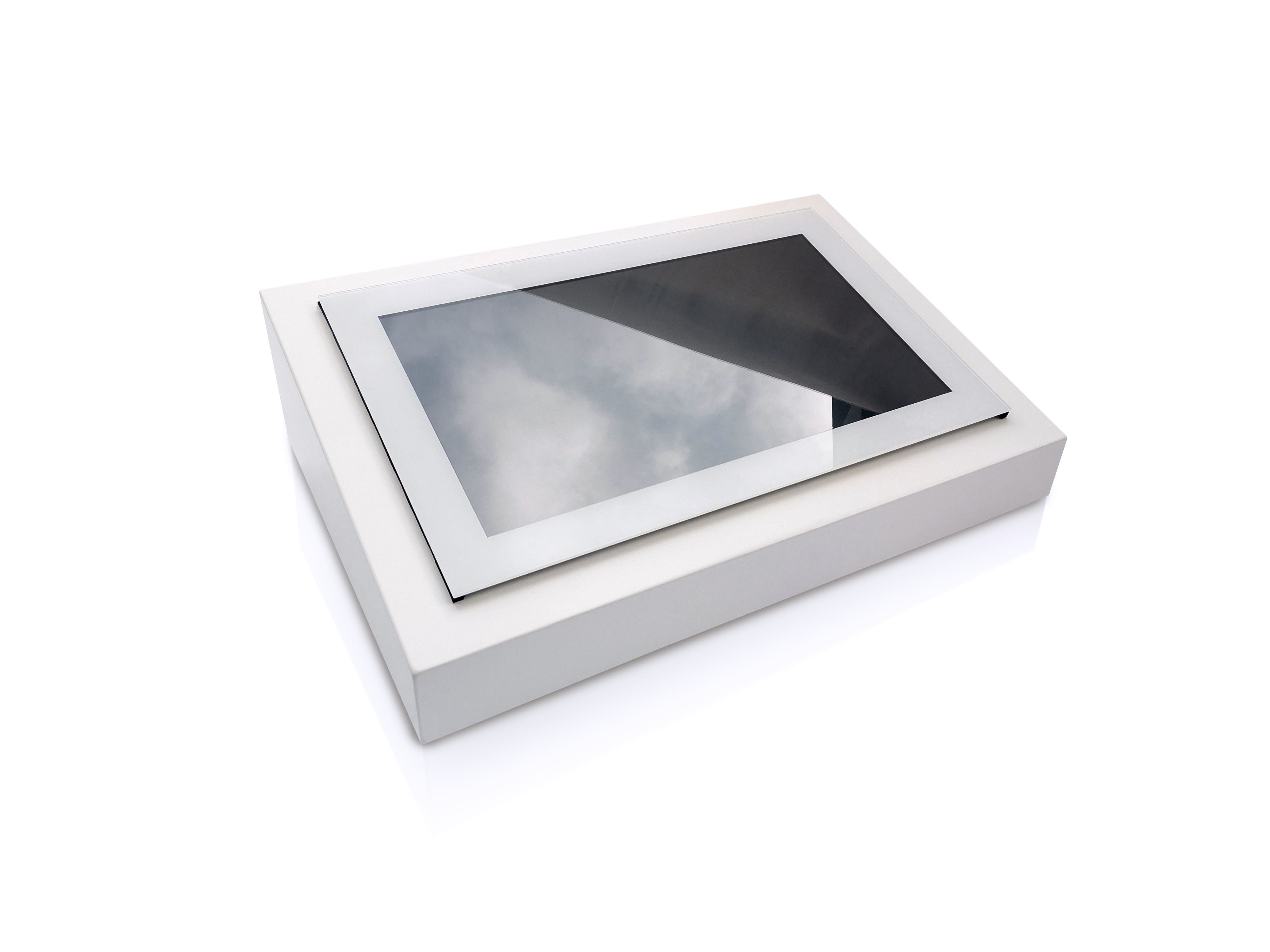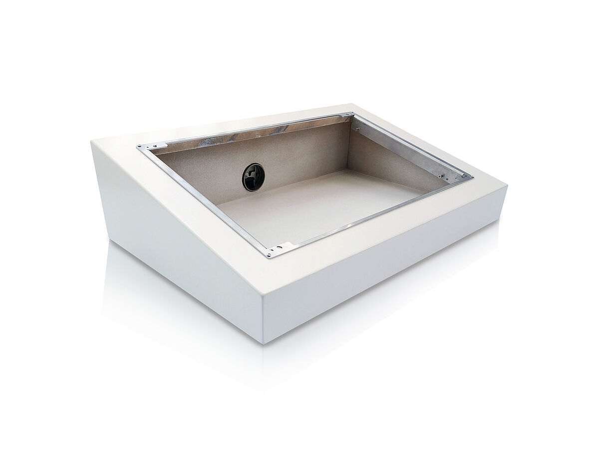 - Pultgehäuse für Touch-PC, Farbe reinweiß RAL 9010 lackiert, HxBxT 700x510x210mm (Artikelnummer: 80100036)