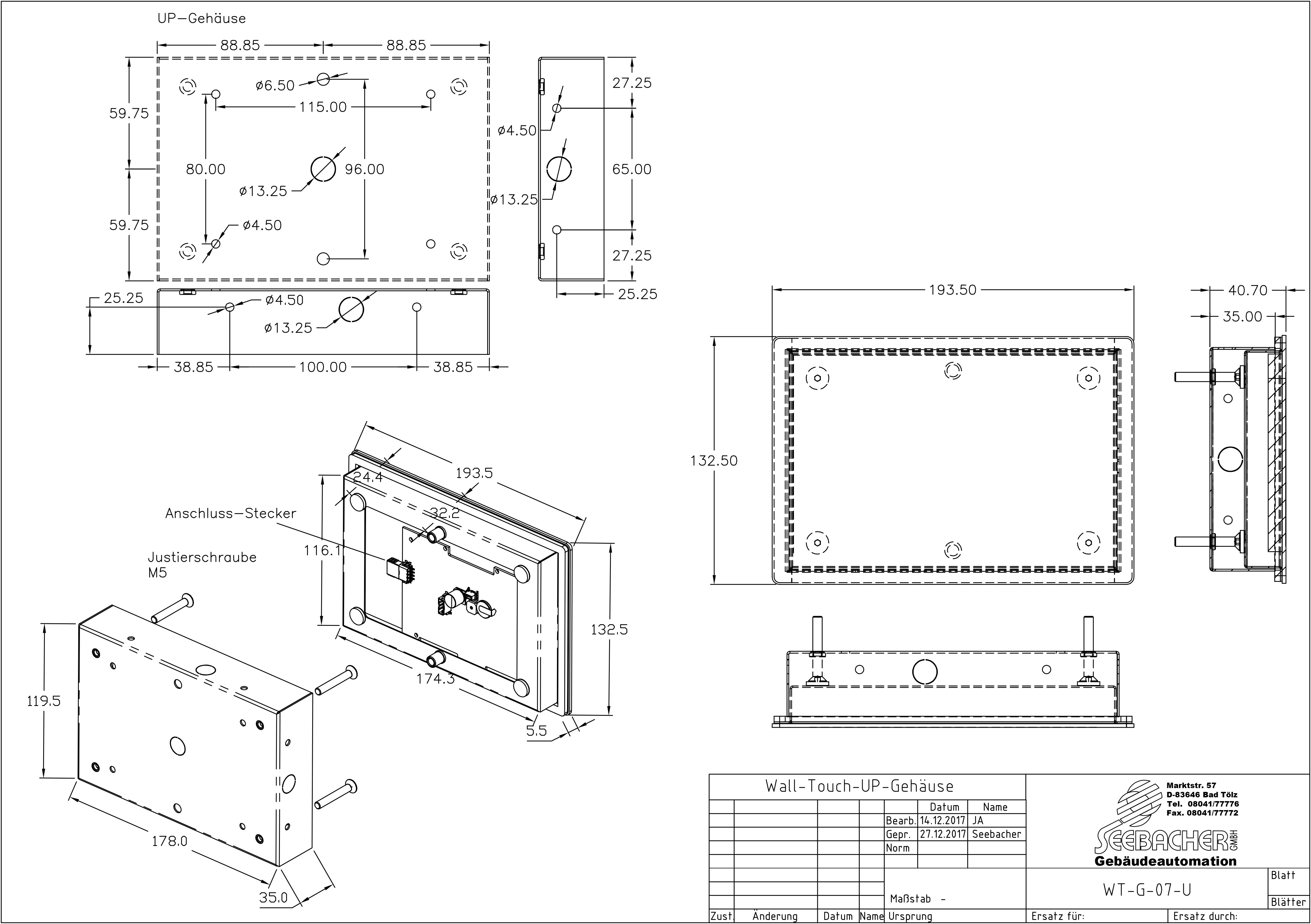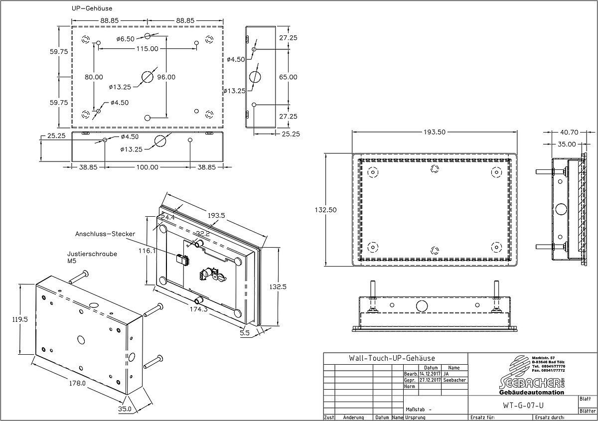 | Abmessungen UP-Gehäuse | HxBxT: 178mm x 119,5mm x 35mm |