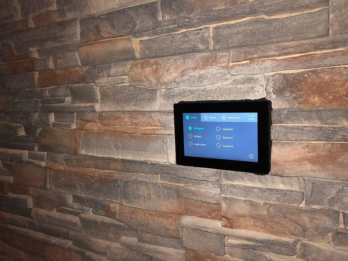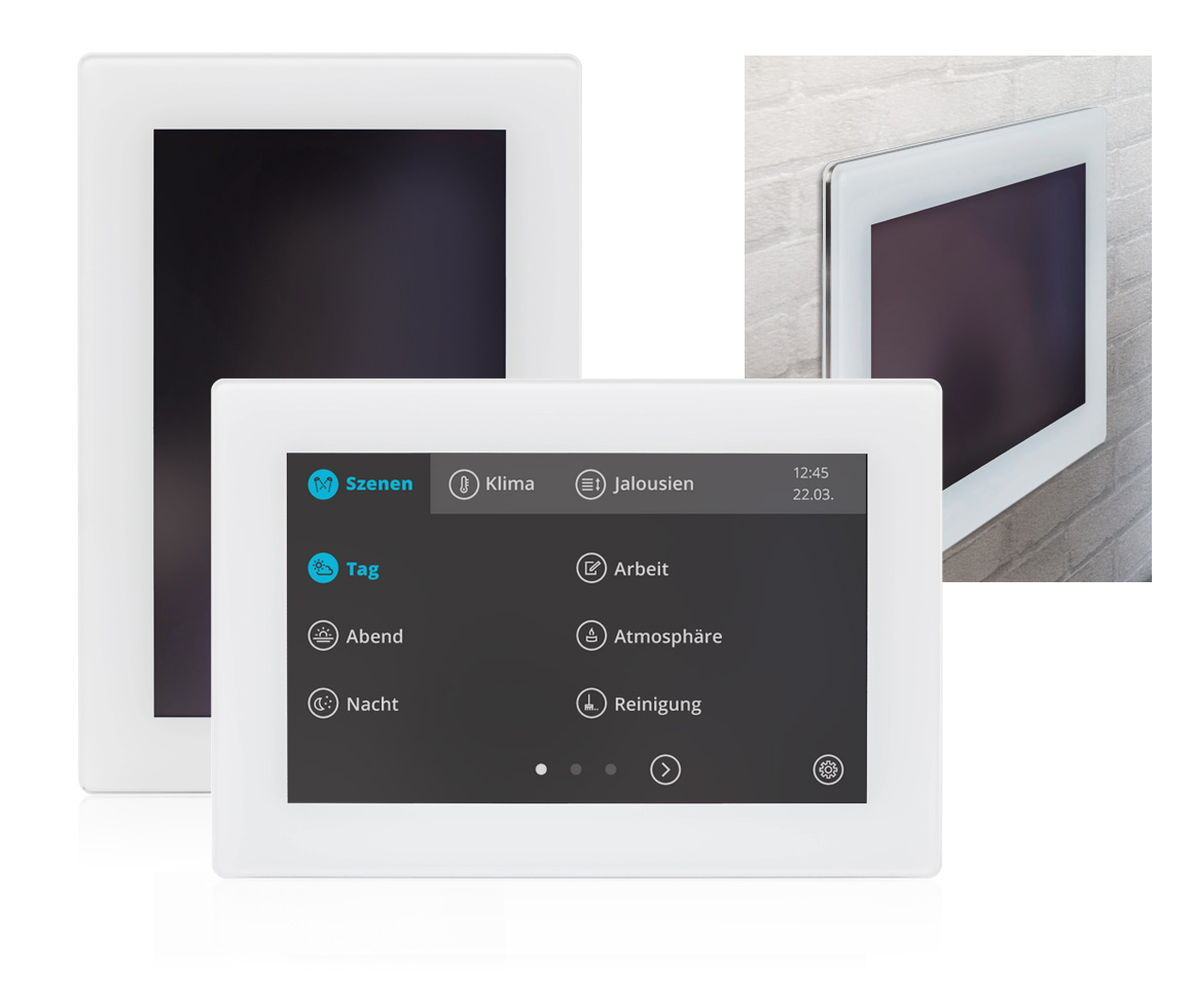Multifunktionale Touch-Bedienstelle mit vollflächiger reflexionsminimierter Glasfront zum Wandeinbau. Das Touch-Panel ist ein ISYGLT-BUS-Teilnehmer, daher ist keine Netzwerkinfrastruktur erforderlich. Alle nötigen Daten stehen jederzeit direkt zur Verfügung und selbst nach einem Spannungsausfall ist die Bedienung innerhalb von 2-3 Sekunden wieder möglich.