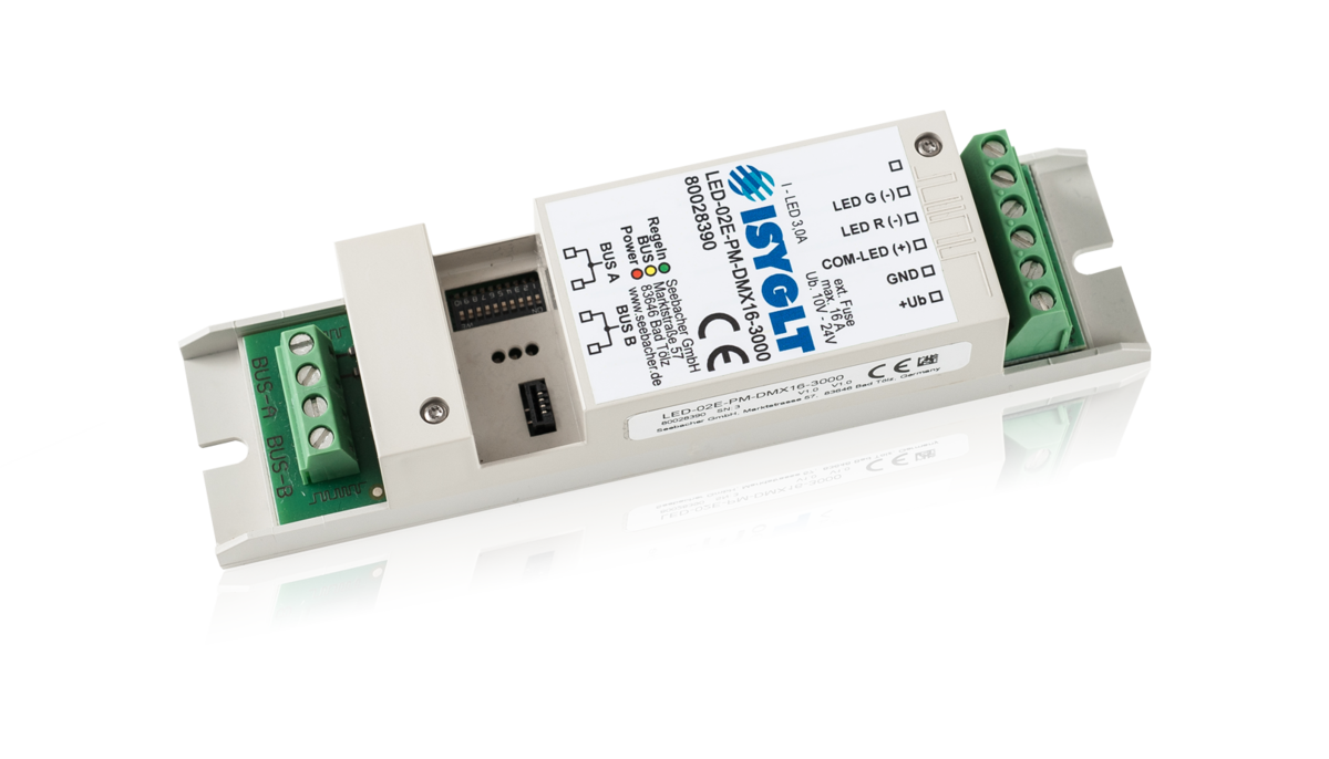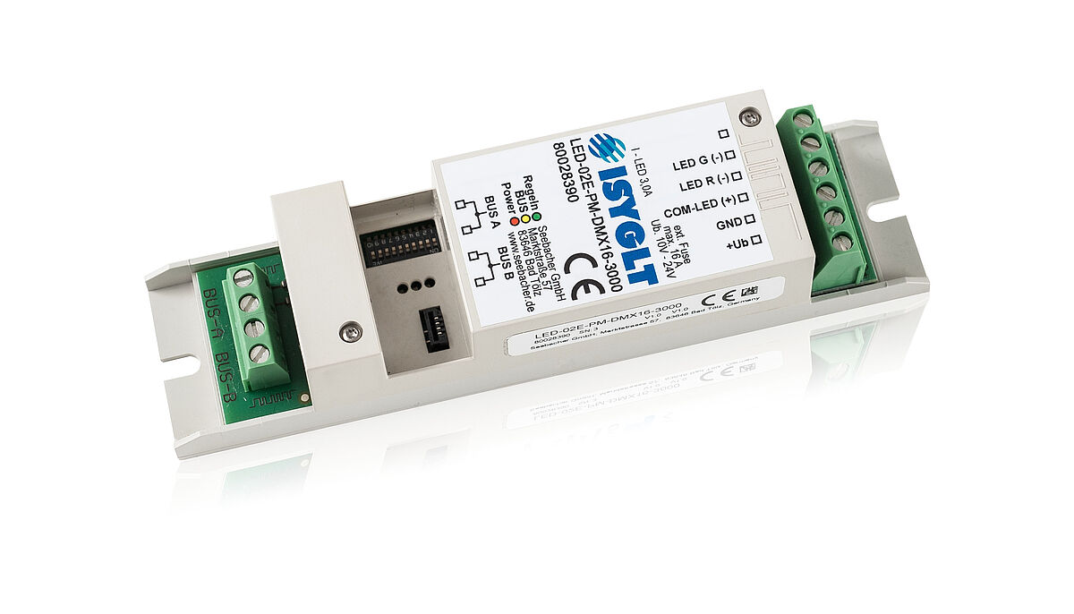 Der LED-Dimmer kann wahlweise am ISYGLT-BUS oder DMX512-BUS betrieben werden.
