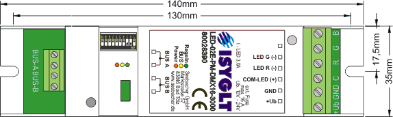| BUS-Ansteuerung | ISYGLT / DMX512-16Bit |