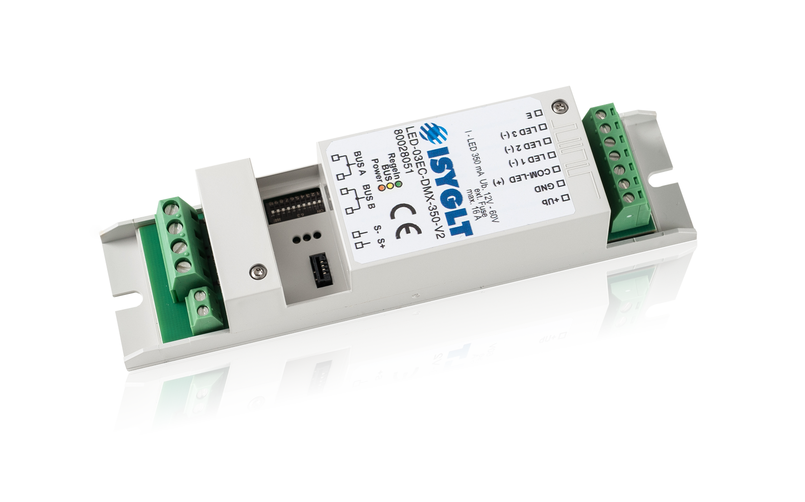 Der LED-Dimmer kann wahlweise am ISYGLT-BUS oder DMX512-BUS betrieben werden.