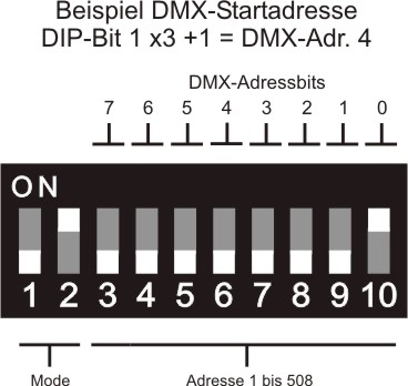 DIP-Schalter DMX512-Betrieb