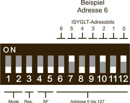 DIP-Schalter ISYGLT-BUS-Betrieb