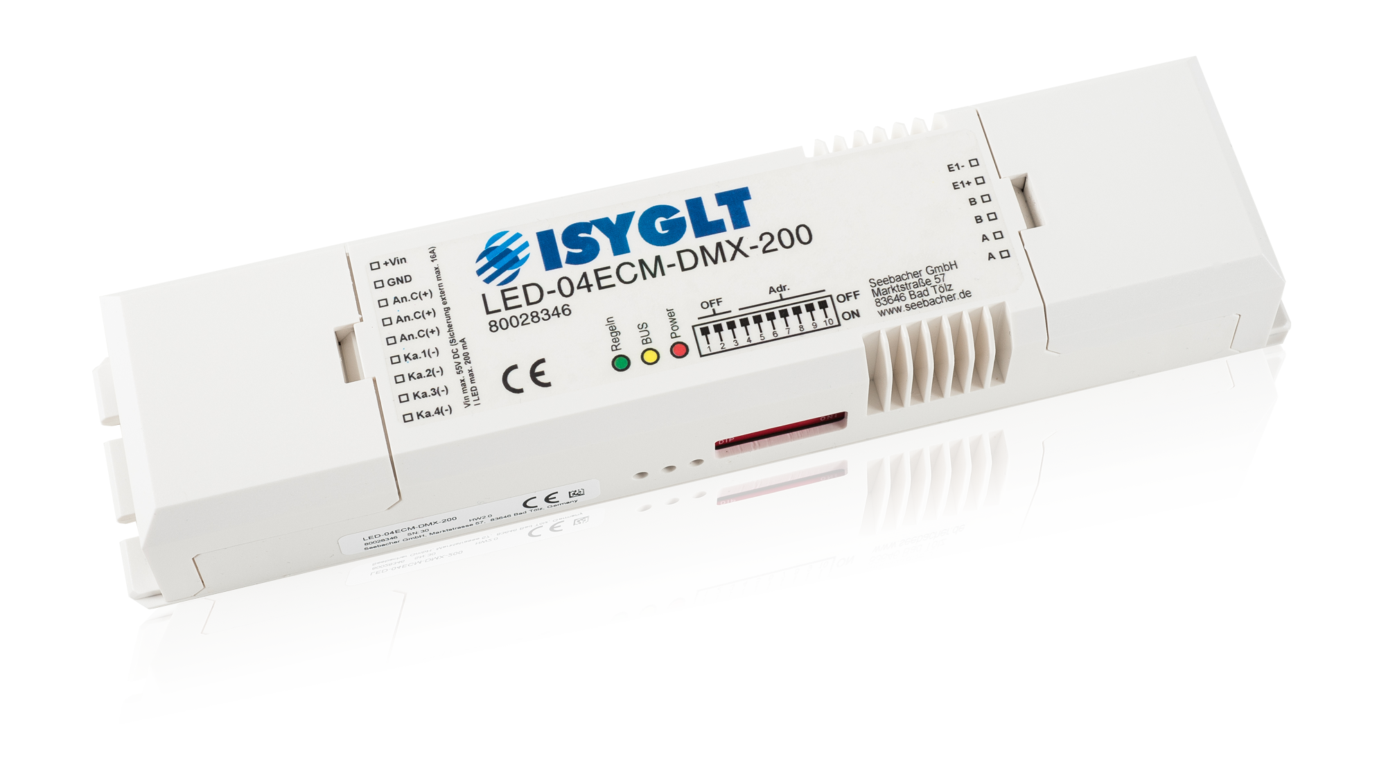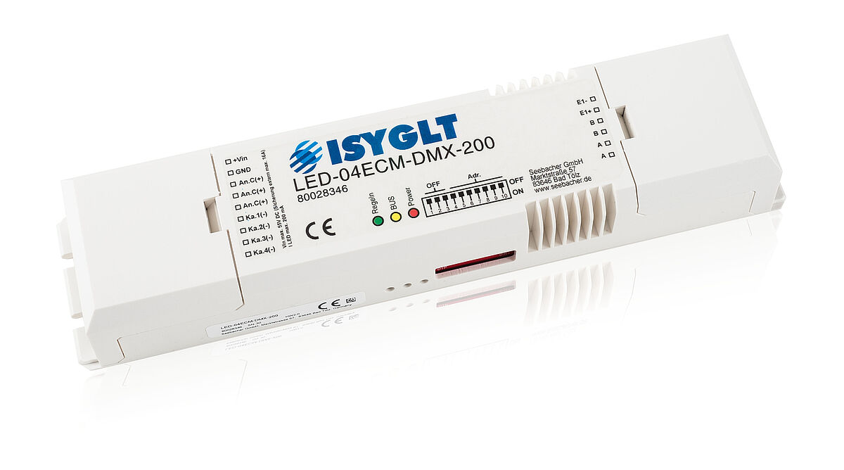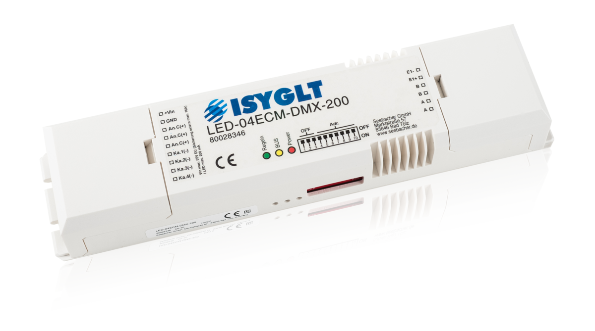 Der LED-04ECM-DMX-200 kann wahlweise am ISYGLT-BUS oder DMX512-BUS betrieben werden.
