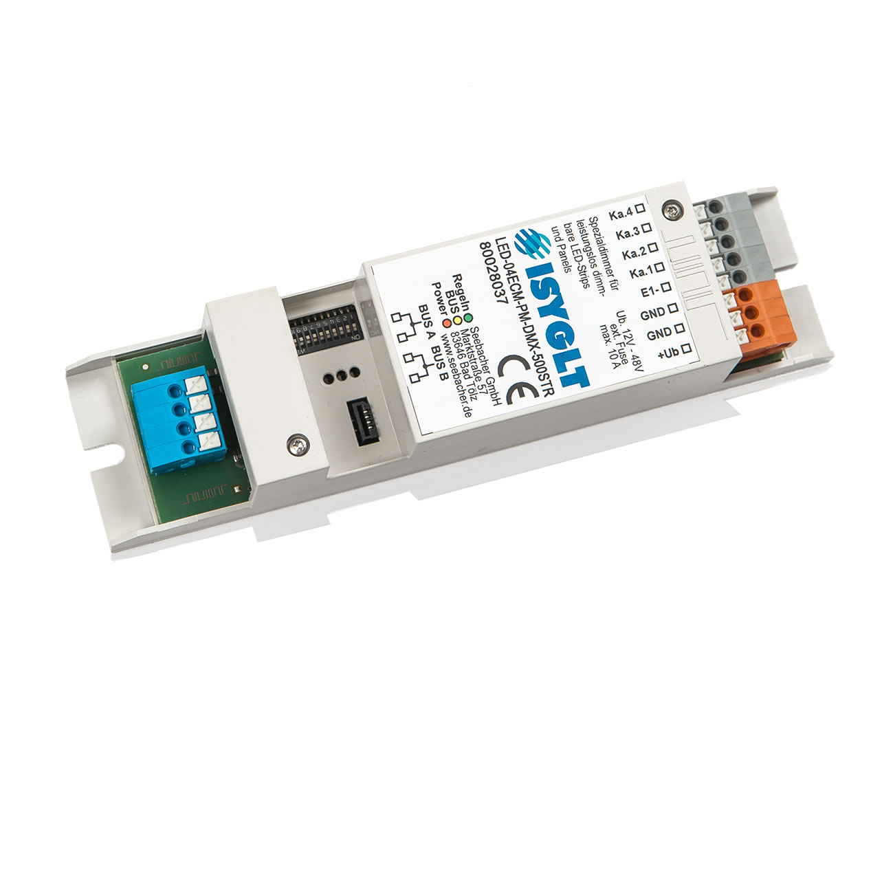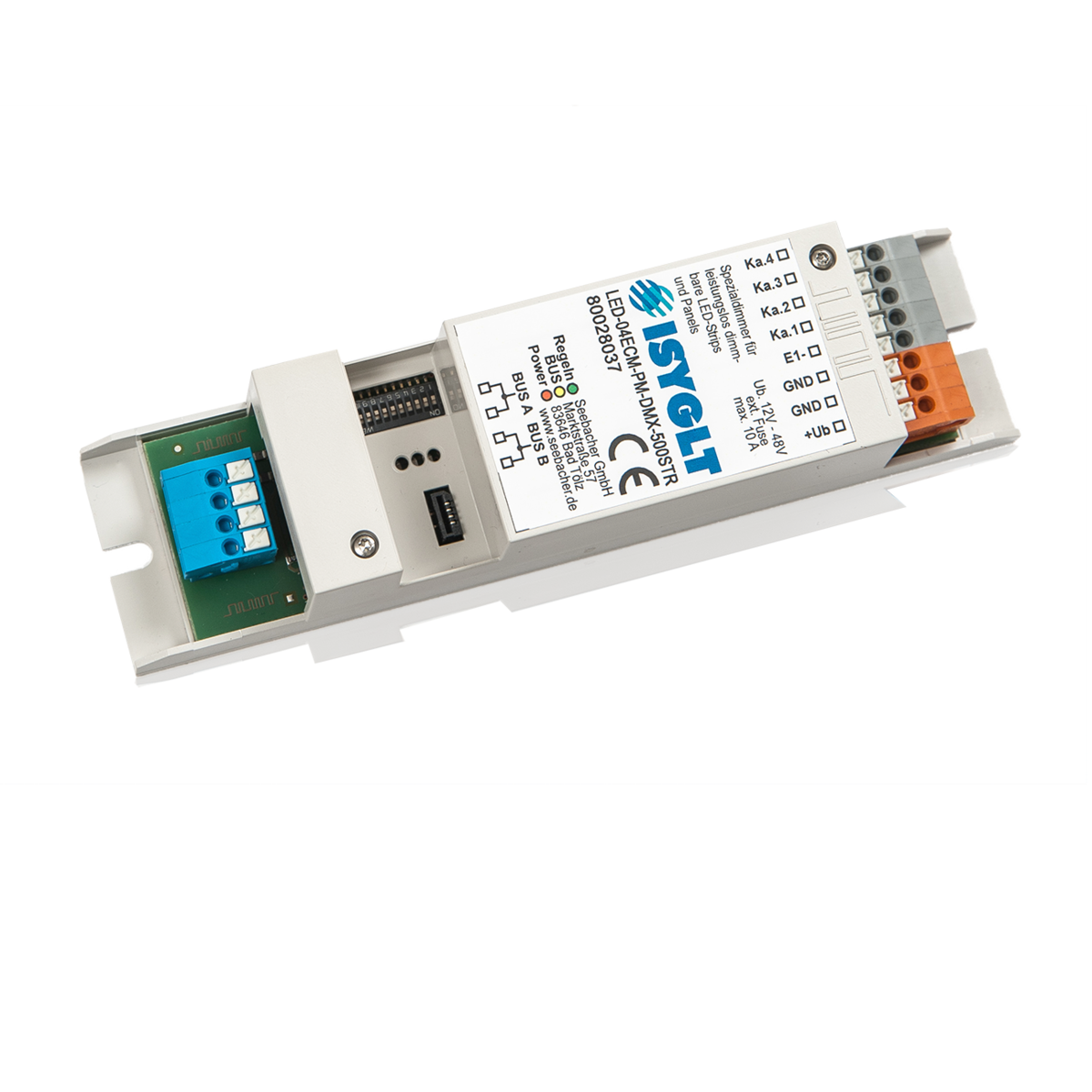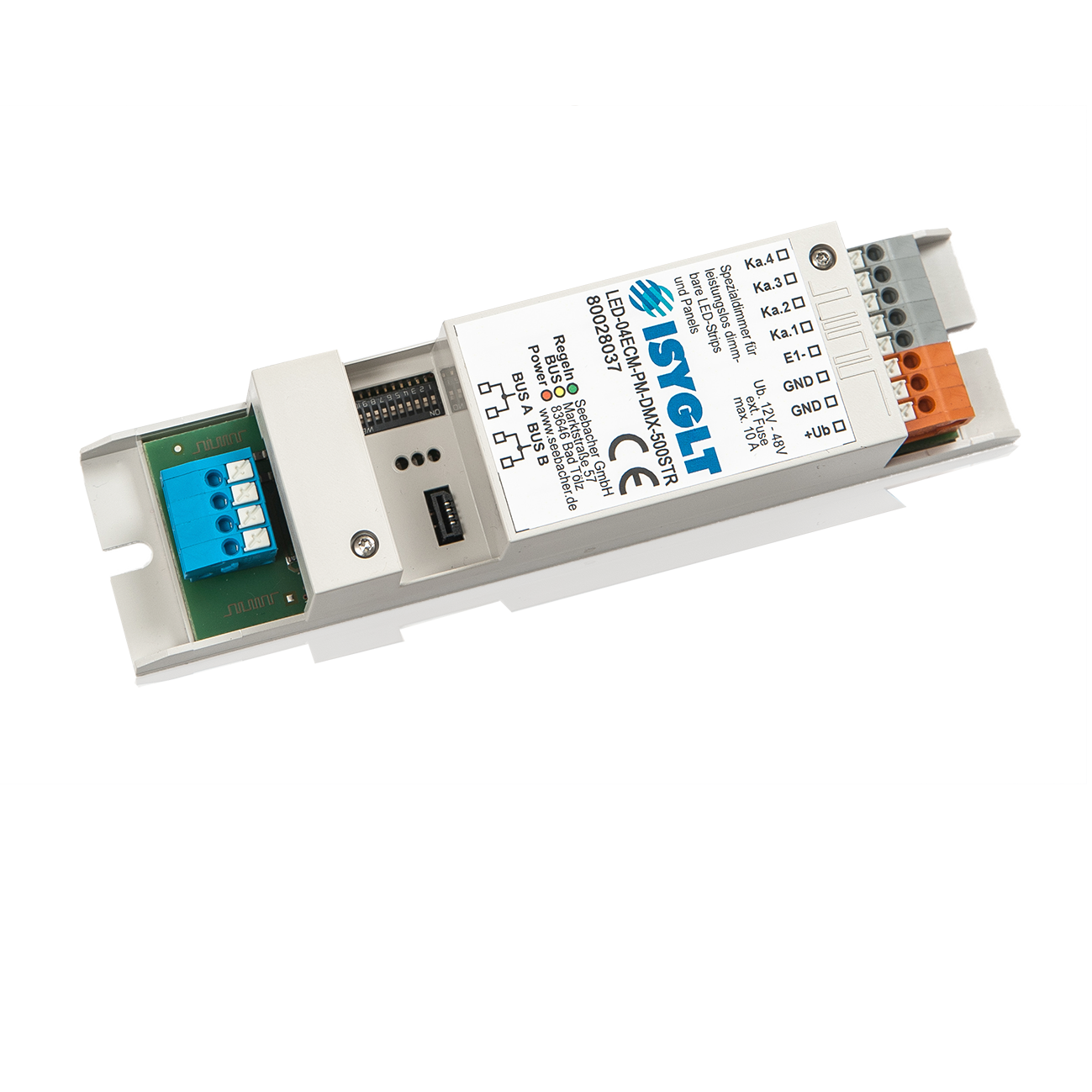 Der LED-04ECM-PM-DMX-500STR kann wahlweise am ISYGLT-BUS oder DMX512-BUS betrieben werden.