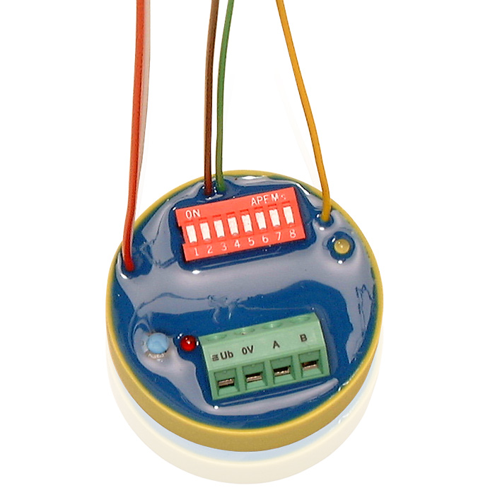 | Bauform | vergossen in gelber Kunststoffkappe zum Einbau in handelsübliche UP-Dosen oder Fremdgeräte |