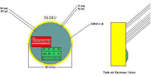 | Anschluss | Schraubklemmen 2,5mm² für BUS, massive Drähte 0,8mm für Eingänge |