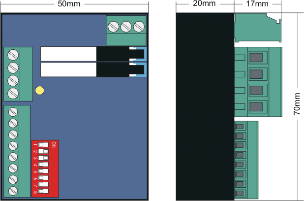8-poliger DIP-Schalter zur Einstellung der ISYGLT-BUS-Adresse (0-127) befindet sich auf dem Modul.