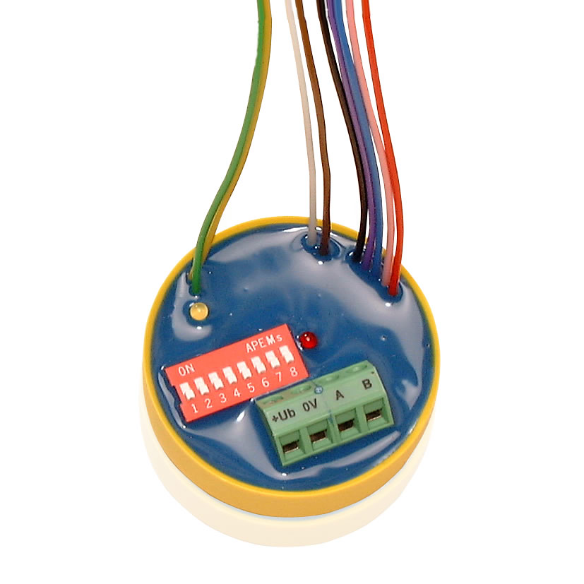 | Bauform | vergossen in gelber Kunststoffkappe zum Einbau in handelsübliche UP-Dosen oder Fremdgeräte |