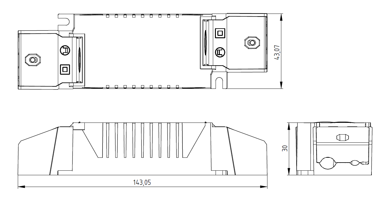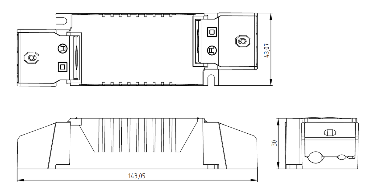 | Abmessungen | LxBxH 143 (97) x 43 x 30 mm |