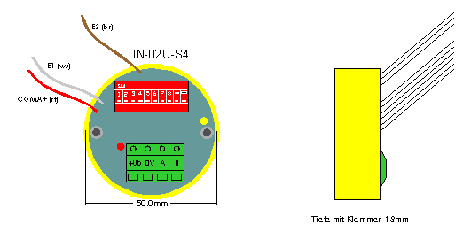 | Anschluss | Schraubklemmen 2,5mm² für BUS, massive Drähte 0,8mm für Eingänge |