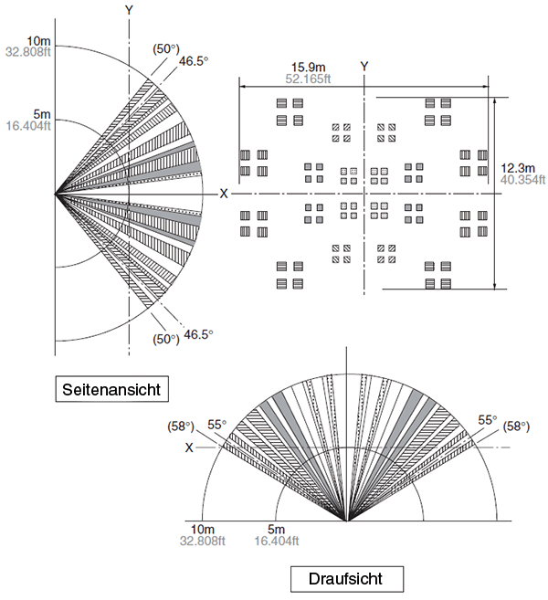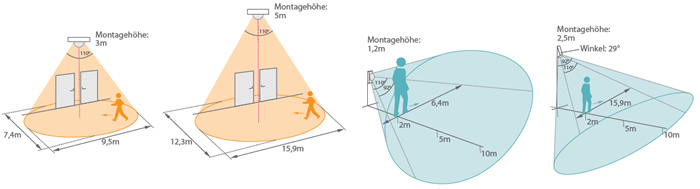 Der Erfassungsbereich ist oval mit einem Winkel von 91° x 110°. Die Reichweite ist über 10m garantiert.