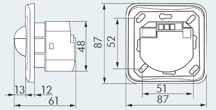 - Reichweite bis 10m (bei 2,20m Montagehöhe)