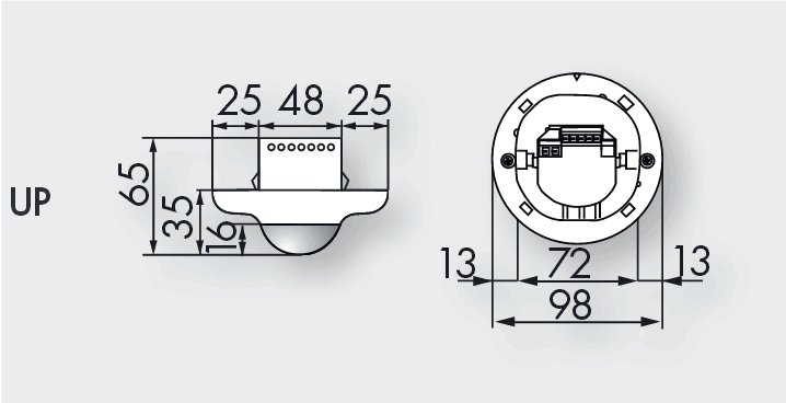 AP: DxH 98mm x 50mm DE: DxH 80mm x 84,5mm UP: DxH 98mm x 65mm |
