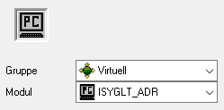 Im ProgrammDesigner (ab Version 8.00.13.1002 R095) muss der Sensor als Modul angelegt werden. Zusätzlich wird ein virtuelles Modul „ISYGLT_ADR“ benötigt.