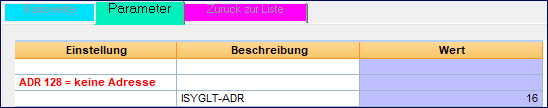 Um die BUS-Adresse einstellen zu können, muss im Register Parameter die gewünschte Adresse eingetragen werden.