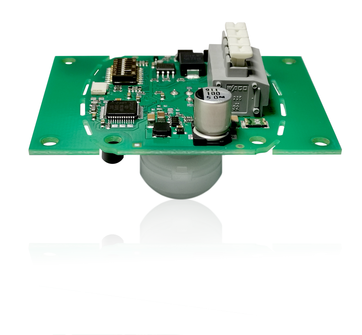 Der PIR-Bewegungssensor ist je nach Type mit unterschiedlichen Erfassungslinsen ausgestattet. Für die Auswertung stehen bis zu 4 separat parametrierbare Empfindlichkeits-Setups zur Verfügung. Somit sind Anpassungen an Kundenwünsche und örtliche Gegebenheiten individuell möglich, wie z.B. die Aktivierung der Beleuchtung nur bei großer Bewegung oder der Erhalt des „Ein“-Zustands auch bei geringen Bewegungserfassungen.