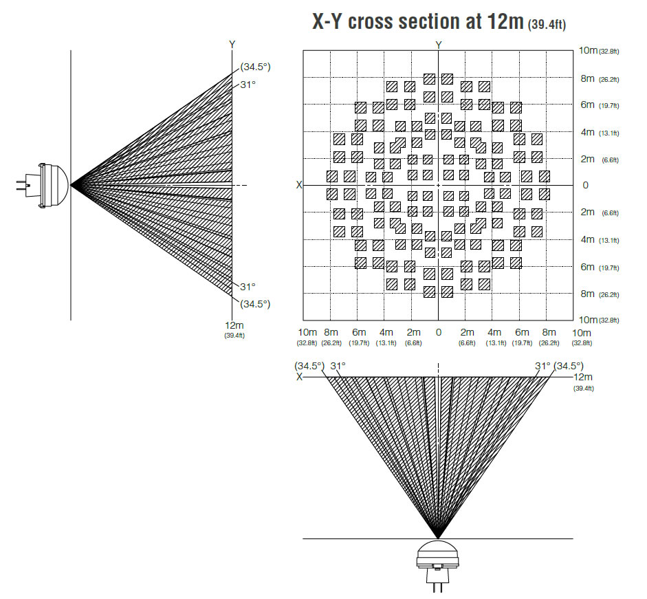 High Density Long Distance Detection Type Erfassung: 69° x 69° Typische Montagehöhe: 12m Reichweite: 12m - 14,5m Sensor EKMC2606111K |
