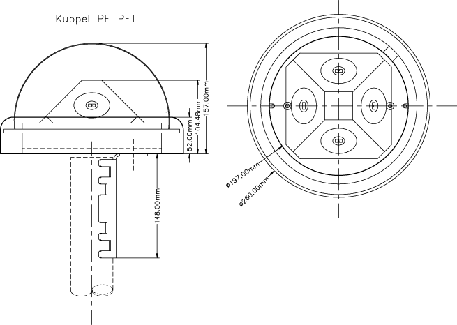 | Abmessungen | H 157mm (ohne Mast), Durchmesser 260mm |