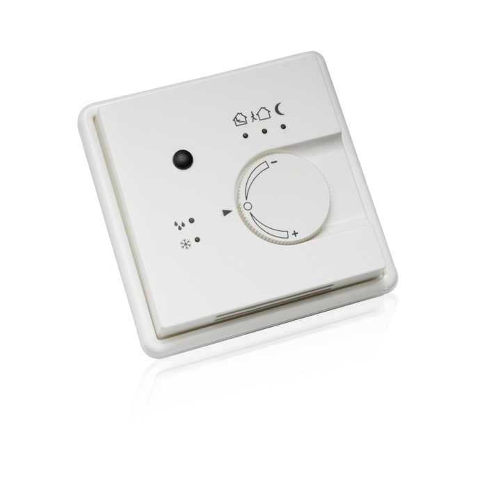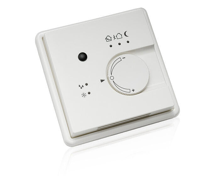 Als Temperatursensor wird ein kalibrierbarer Halbleitersensor verwendet. Sollte der Raumregler an einem Ort angebracht sein, der nicht die gleiche Temperatur wie der Aufenthaltsbereich aufweist, kann der Sollwert nochmals über die Parametriersoftware (ProgrammDesigner) angepasst werden. Somit lassen sich Temperaturgradienten im Raum kompensieren.