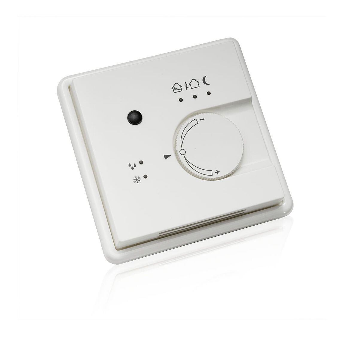 Mit dem auf der Frontseite angebrachten Drehknopf kann der Sollwert in den Betriebsarten „Tag“, „Nacht“ und „Komfortbetrieb“ um ±0-3K (parametrierbar) verändert werden.