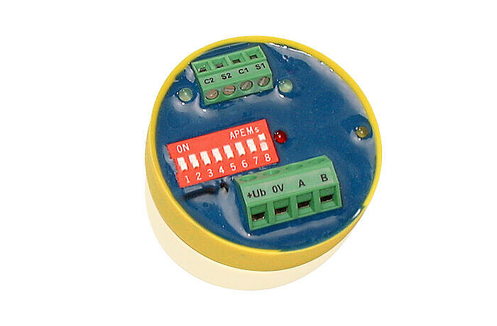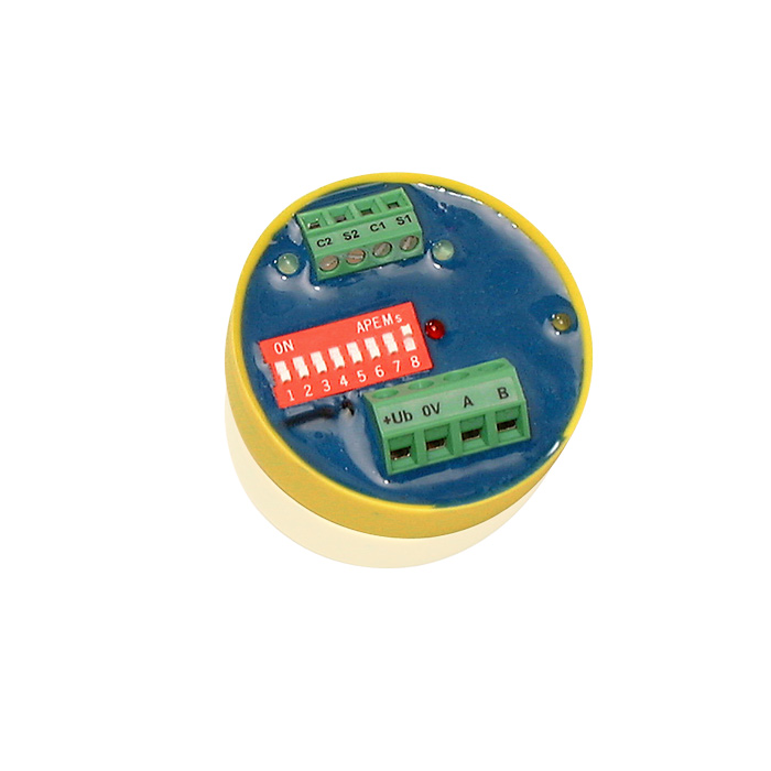 | Bauform | vergossen in gelber Kunststoffkappe zum Einbau in Dosen oder Fremdgeräte |