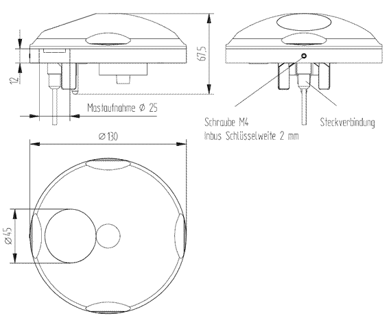 | Bauform | Kunststoffgehäuse zur Montage auf einem 25mm Mastrohr |