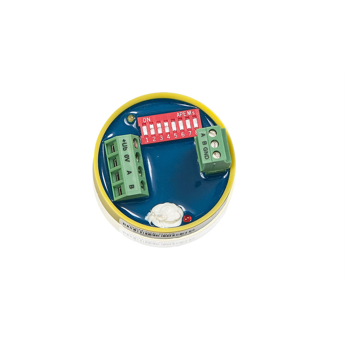 | Bauform | vergossen in gelber Kunststoffkappe zum Einbau in Dosen oder Fremdgeräte |