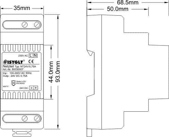 Das Netzteil dient zur Betriebsspannungsversorgung der ISYGLT-BUS-Komponenten.