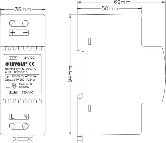 Das Netzteil dient zur Betriebsspannungsversorgung der ISYGLT-BUS-Komponenten.